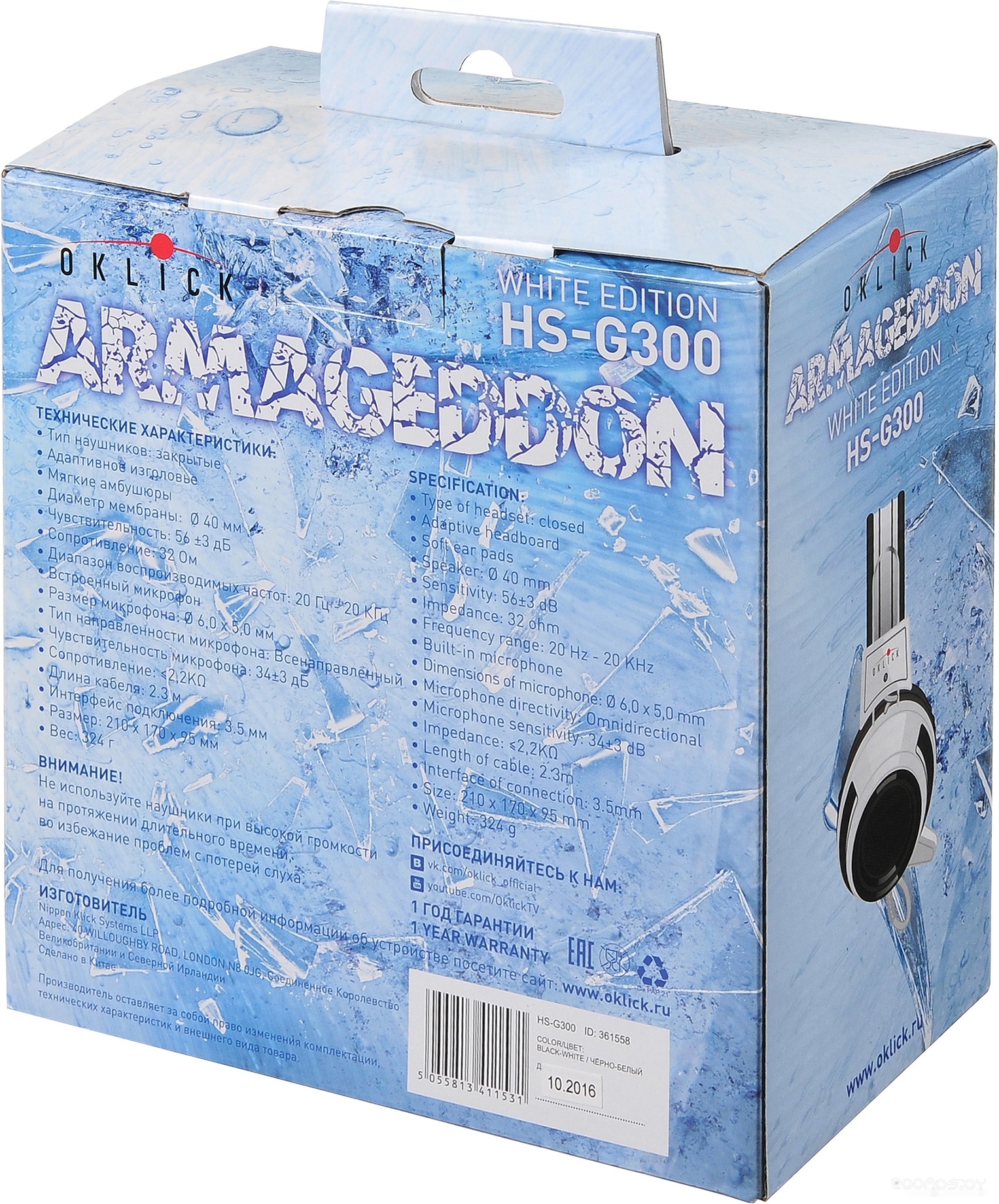 Производитель: Oklick. Артикул: HS-G300 Armageddon (белый/черный)