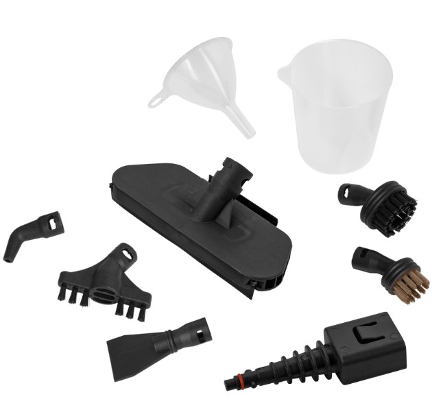 | Комплектация | мерный стакан, насадка из микрофибры, воронка, скребок (2 шт.), тканевая насадка, рамка для ковра, струйная насадка, щетка нейлоновая, угловая насадка, металлическая щетка, щетка ворсовая (плоская) | ||