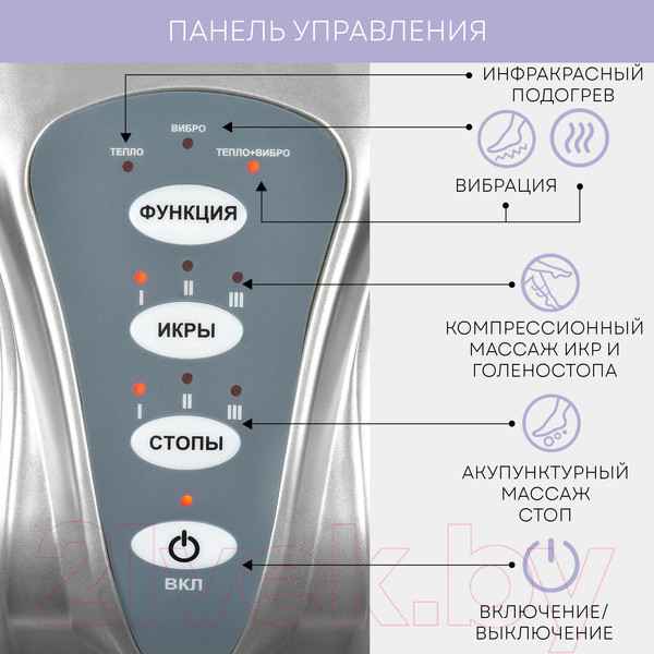 | Массажные программы | воздушно-компрессионный массаж, акупунктурный, вибромассаж | ||