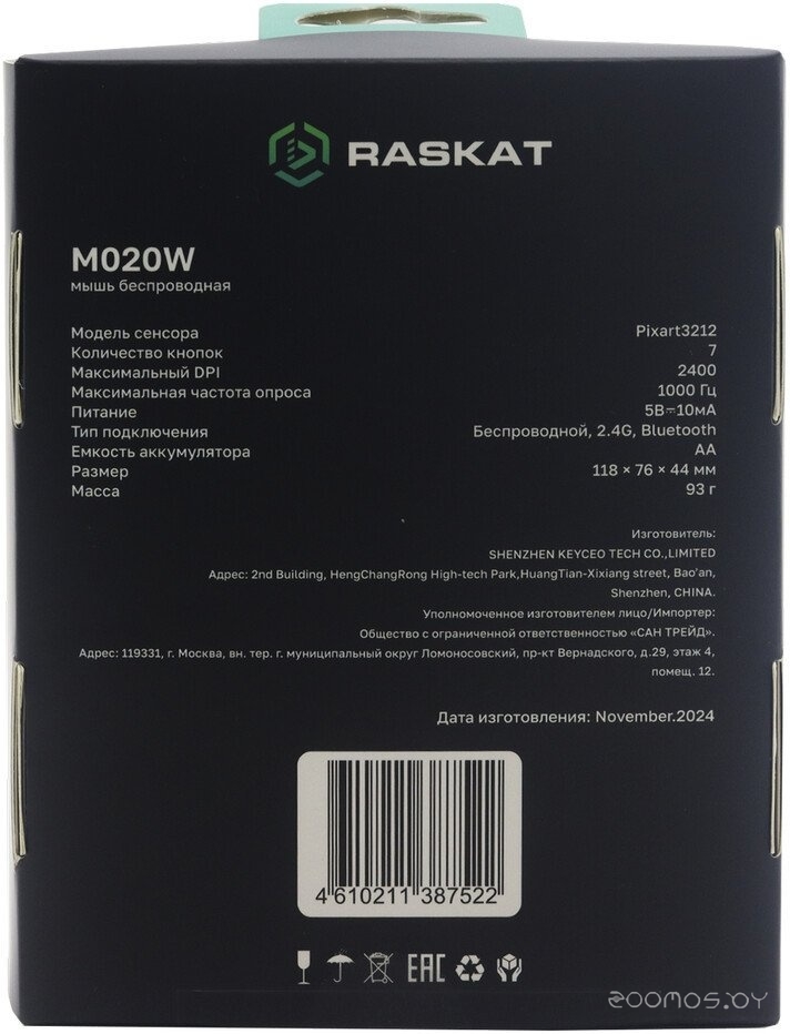| Комплектация | 1 батарейка AA, USB-приемник, документация | ||
