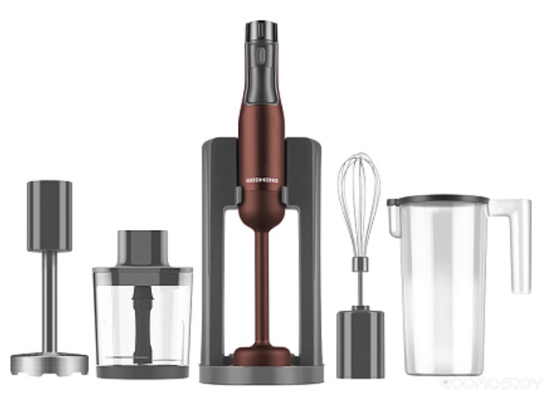 Комплектация | насадка-блендер, мерный стакан, насадка-измельчитель, насадка для пюре, S-образный нож, документация, насадка-венчик, подставка | ||