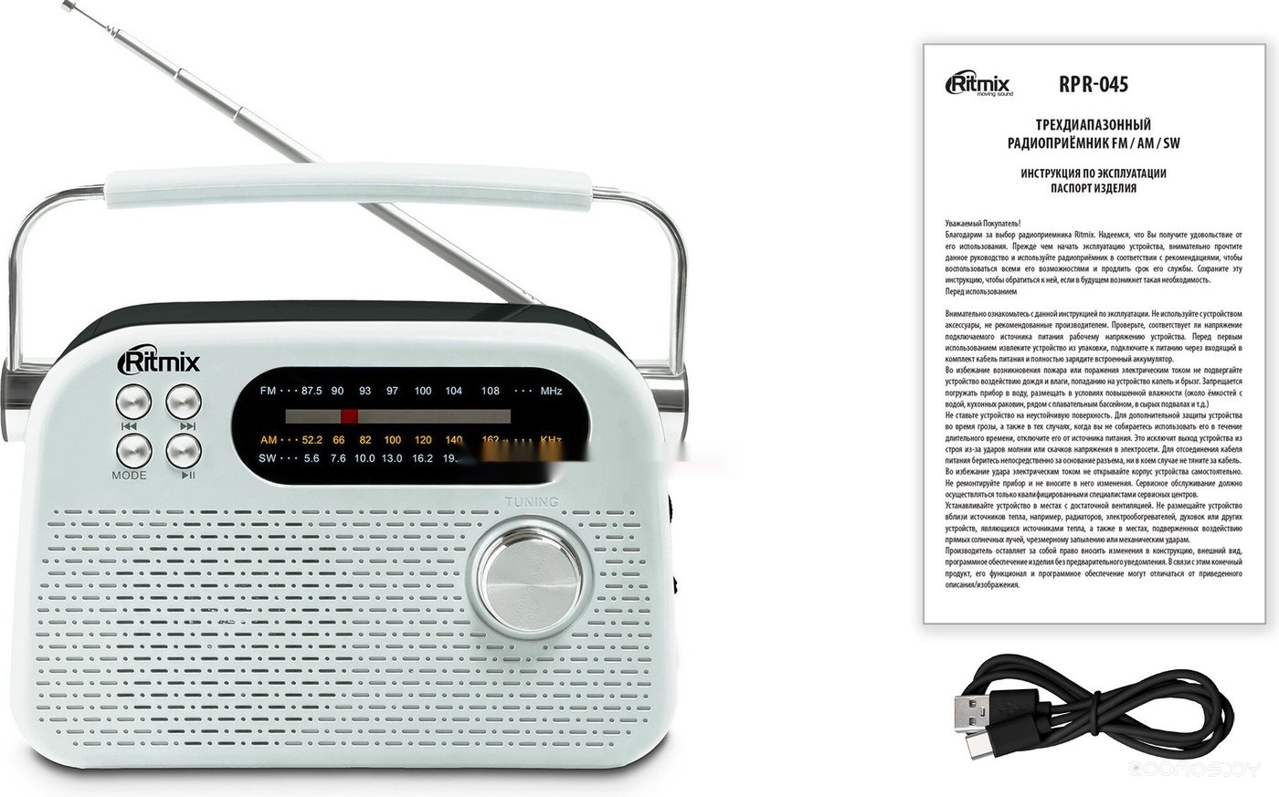 Радиоприемник Ritmix RPR-045 (белый) код: 433.836
