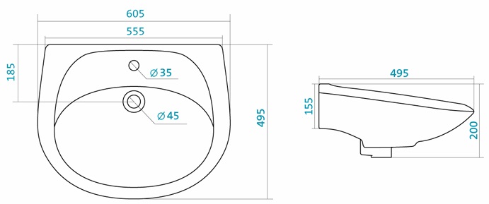 | Отверстие под перелив | есть | ||