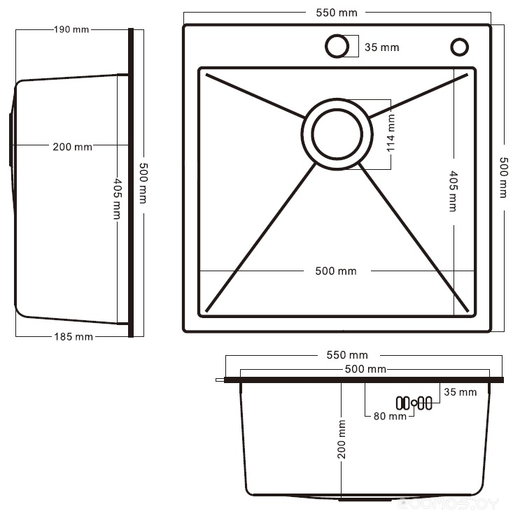 | Ширина мойки | 55 см | ||