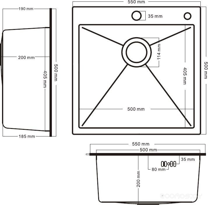 | Ширина мойки | 55 см | ||