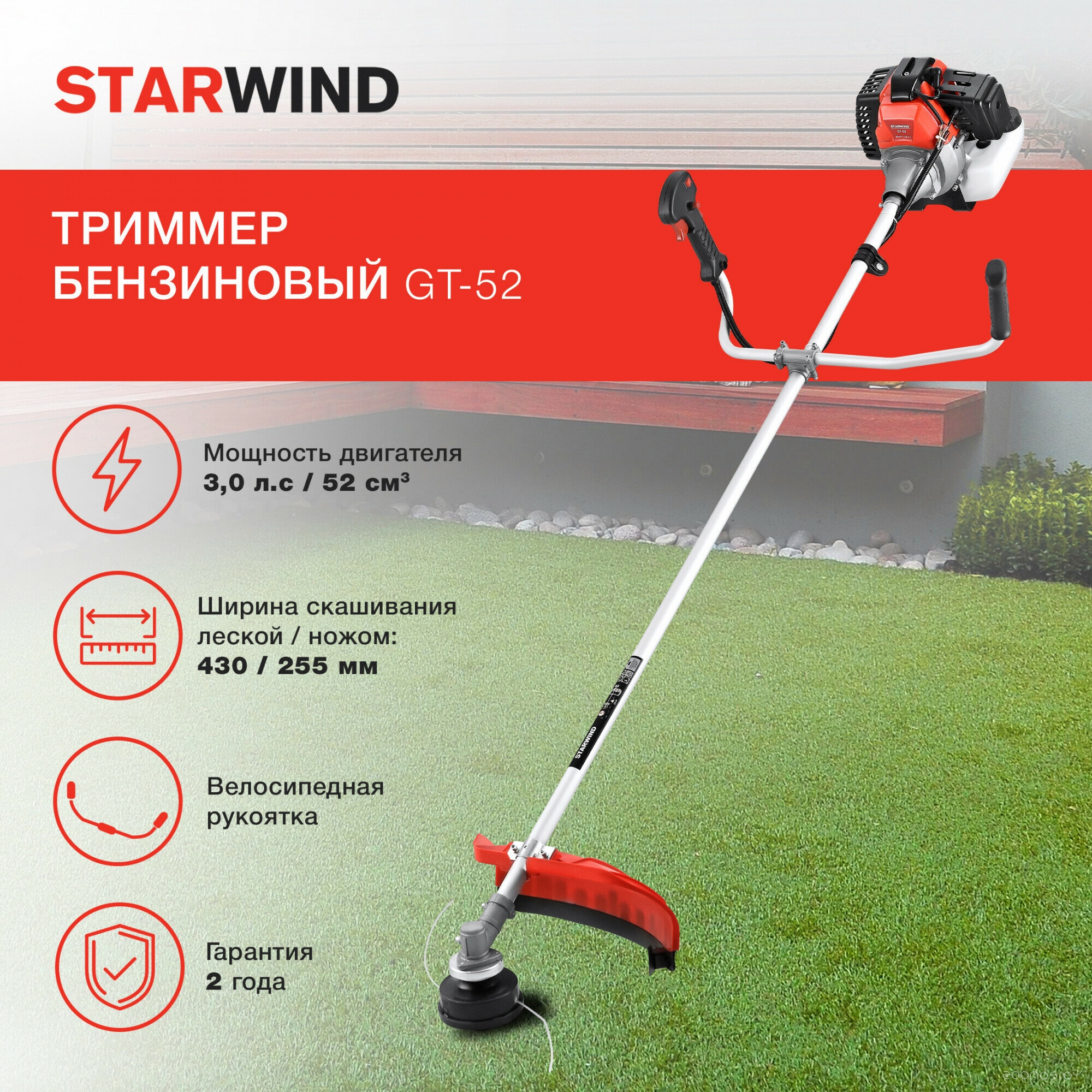 | Ширина скашивания леской | 43 см | ||