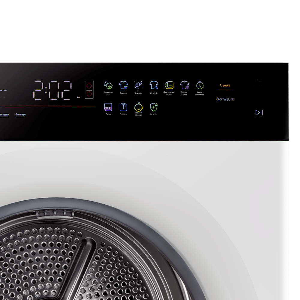 Сушильная машина (верхняя) с тепловым насосом: Бережно сушит до 10 кг белья. Эта технология Heat Pump — сама передовая на рынке: она существенно снижает энергопотребление (класс C), предотвращает усадку и сохраняет качество даже деликатных тканей.