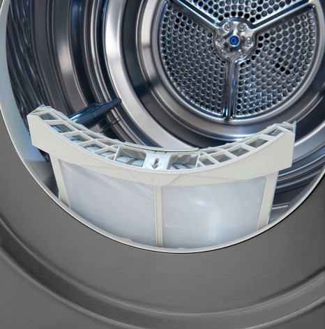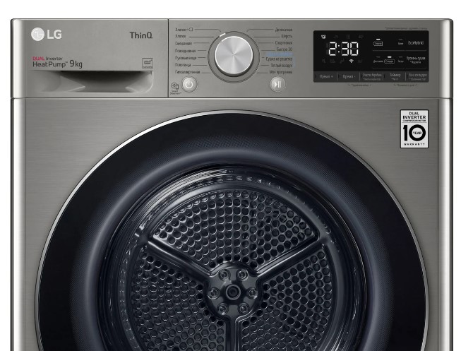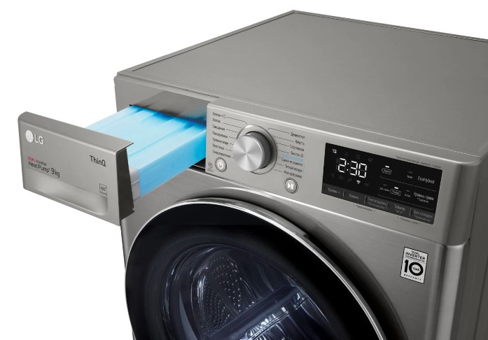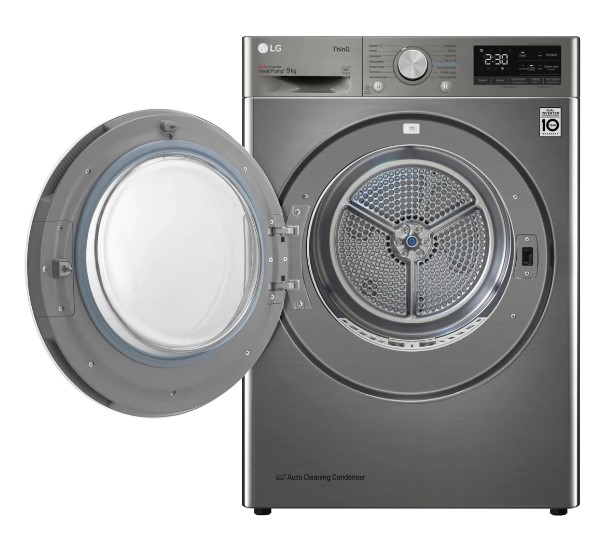 LG DC90V5V9S имеет большой барабан объемом 122 литра, поэтому вы можете высушить большое количество белья за один раз, а уровень шума во время цикла сушки составляет всего 64 дБ. Самая короткая доступная программа длится всего 30 минут, поэтому вам не придется долго ждать, пока ваше белье будет готово.