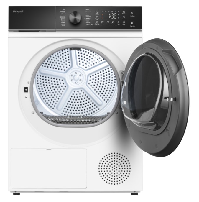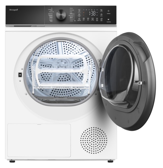 Отдельностоящая сушильная машина Weissgauff WD 5910 Heat Pump, оснащенная тепловой помпой, имеет фантастический показатель загрузки до 10 килограммов белья, что делает данную модель реальным воплощением основного принципа Weissgauff: "Качество, доступное каждому"!