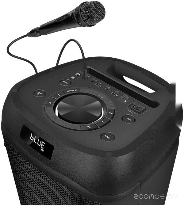 Дополнительные возможности: режим усиления басов, радио, эквалайзер, подставка для смартфона, караоке