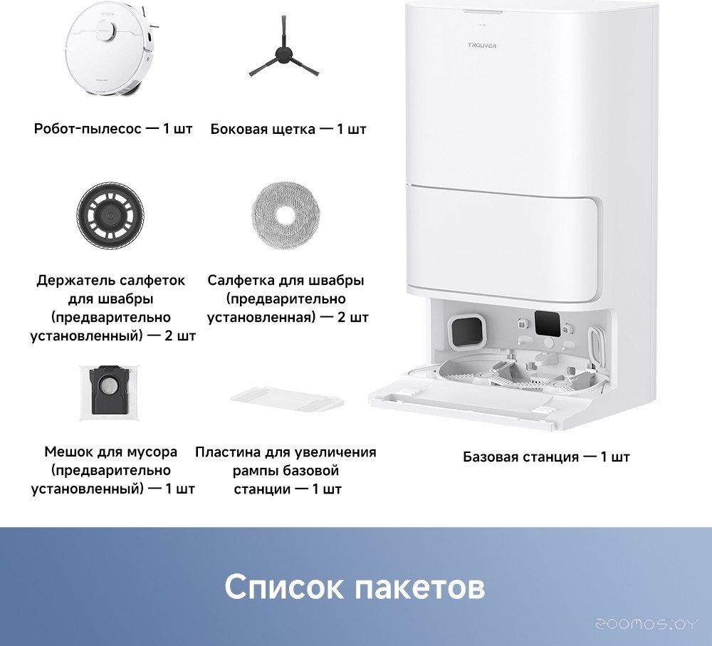 | Комплектация | Робот пылесос Тряпки для влажной уборки Базовая станция (с мешком и пластиной для увеличения) | ||