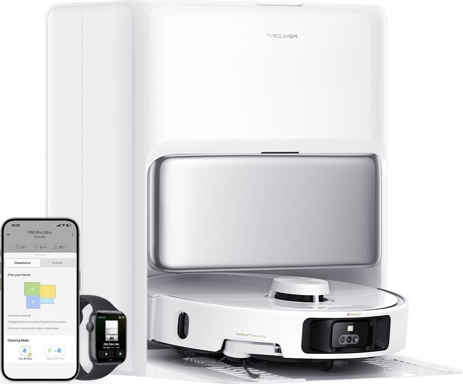 | Особенности базы | автоматическая мойка швабры, автоматическая заправка водой, автоматический долив моющего средства, автоматическая сушка швабры, снятие швабры при сухой уборке | ||