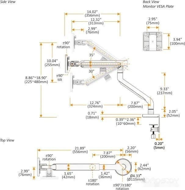 | Совместимость с креплением VESA | 100x100, 75x75 | ||