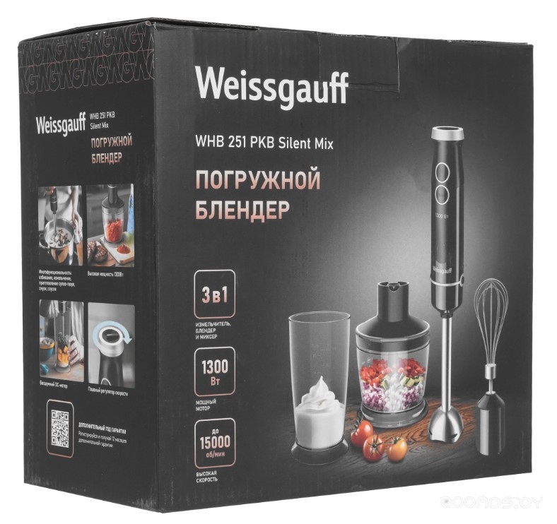 | Комплектация | насадка-блендер, мерный стакан, насадка-венчик, насадка-измельчитель | ||