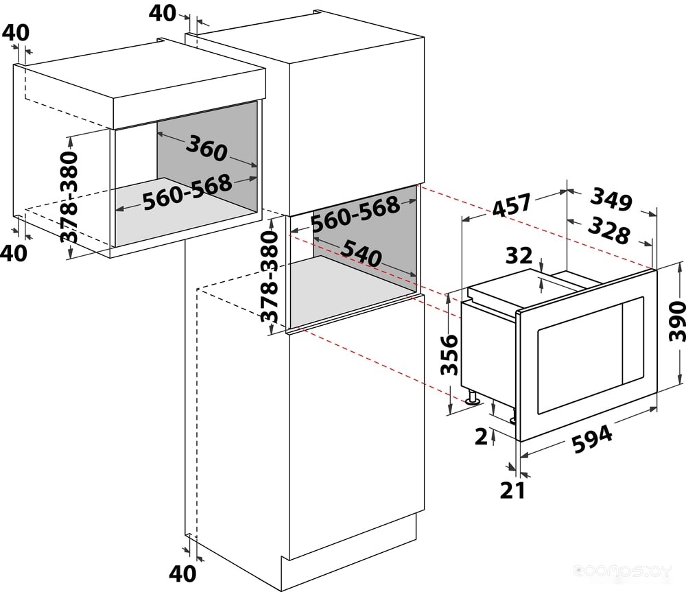 | Высота ниши для встраивания | 38 см | ||