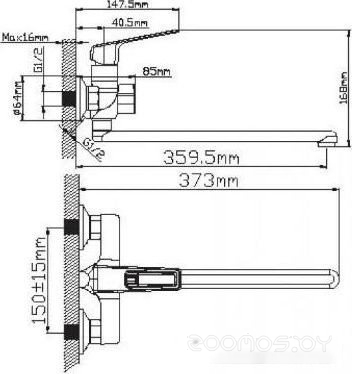 | Длина излива | 359.5 мм | ||