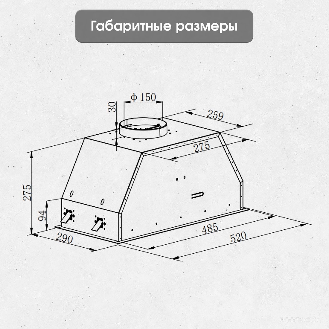 | Диаметр патрубка воздуховода | 150 мм | ||