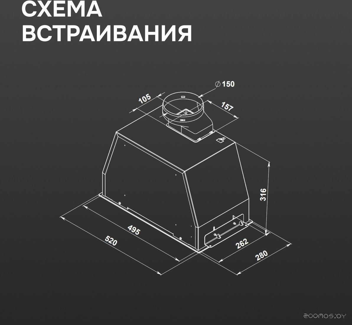 | Диаметр патрубка воздуховода | 150 мм | ||