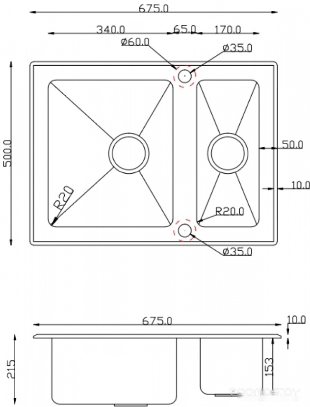 | Глубина мойки | 50 см | ||